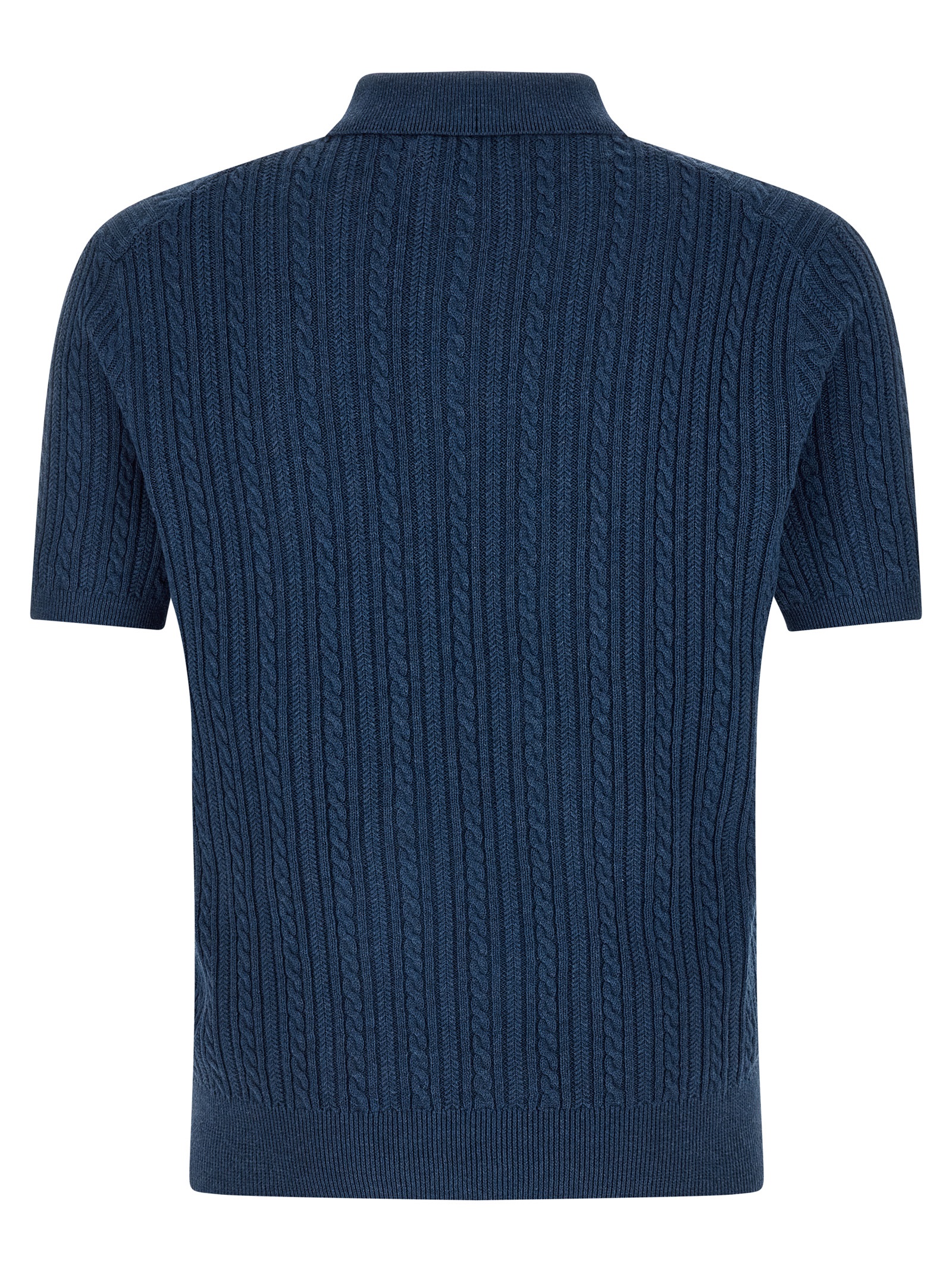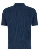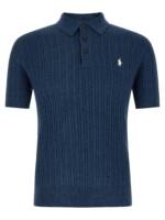 Polo shirt in ultralight combed cotton yarn with thin brushes, Knit with collar and buttons, Front ‘pony’ logo embroidery, Short cuffed sleeves, And headband.