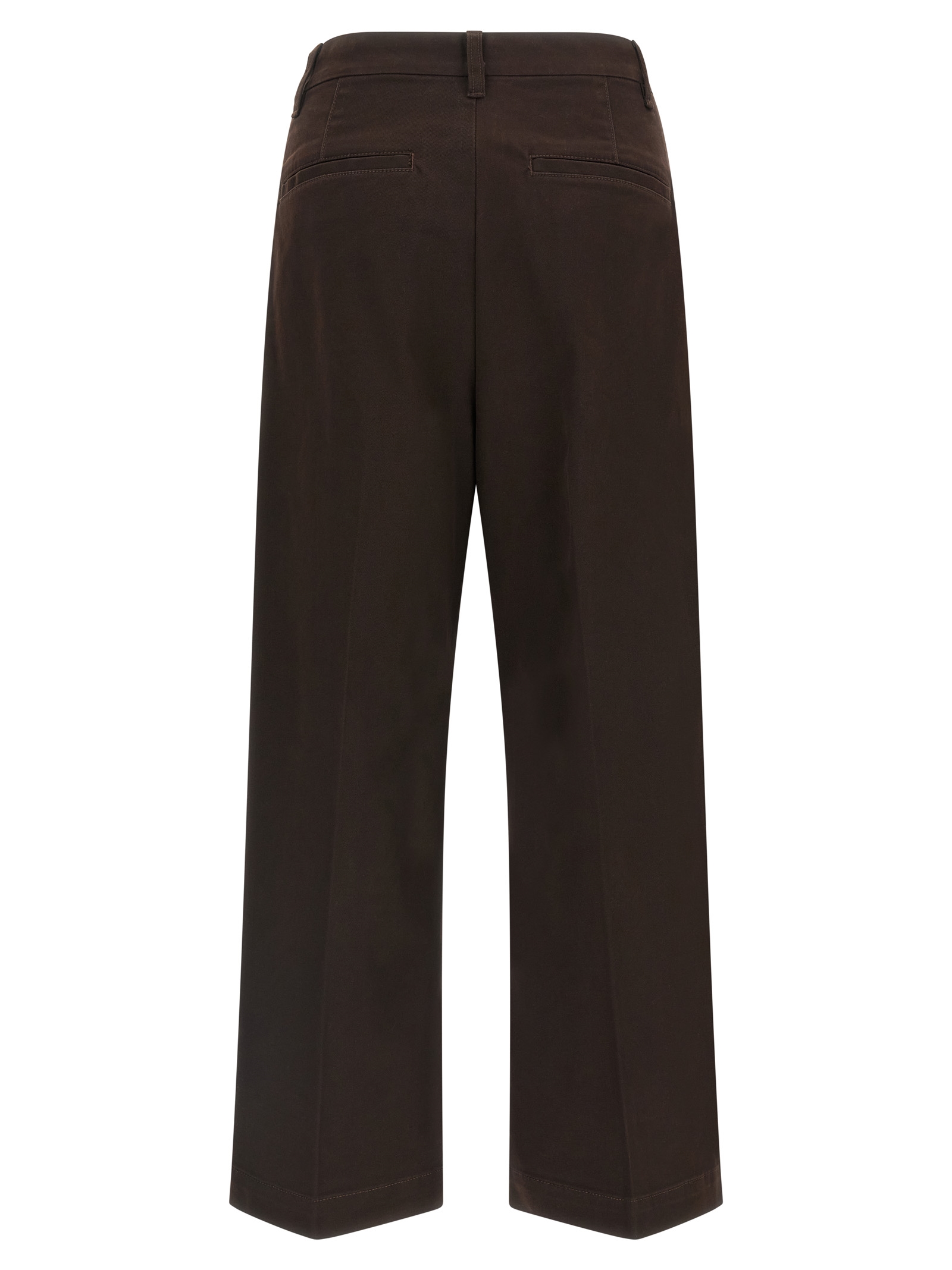 Stretch cotton twill pants, Crop chino, Flared wide leg, Expanded pleat, Zip and front button closure, Pockets.