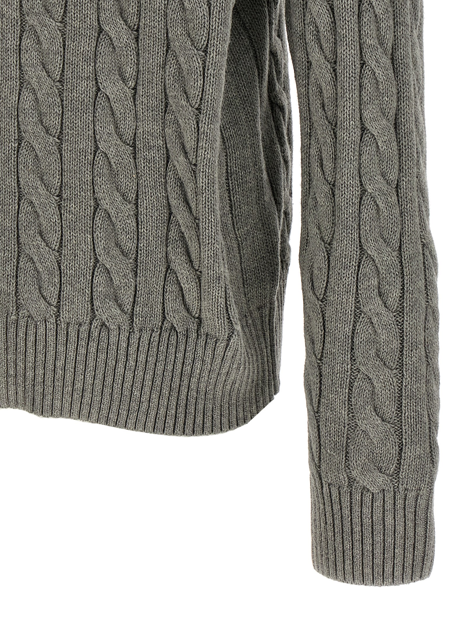 Cotton sweater with texture effect braids, front logo embroidery, crew neck, long cuffed sleeves.