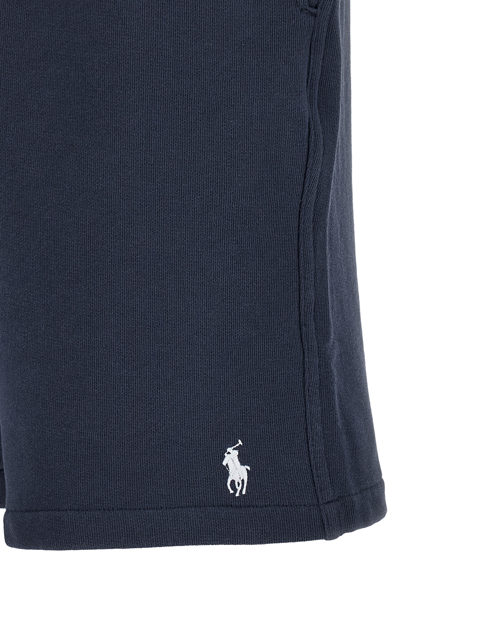Cotton terry bermuda shorts, Iconic ‘pony’ embroidery at the front, Drawstring elastic waistband, Trompe l’oeil flap, Pockets. Size and Fit – true to size fit