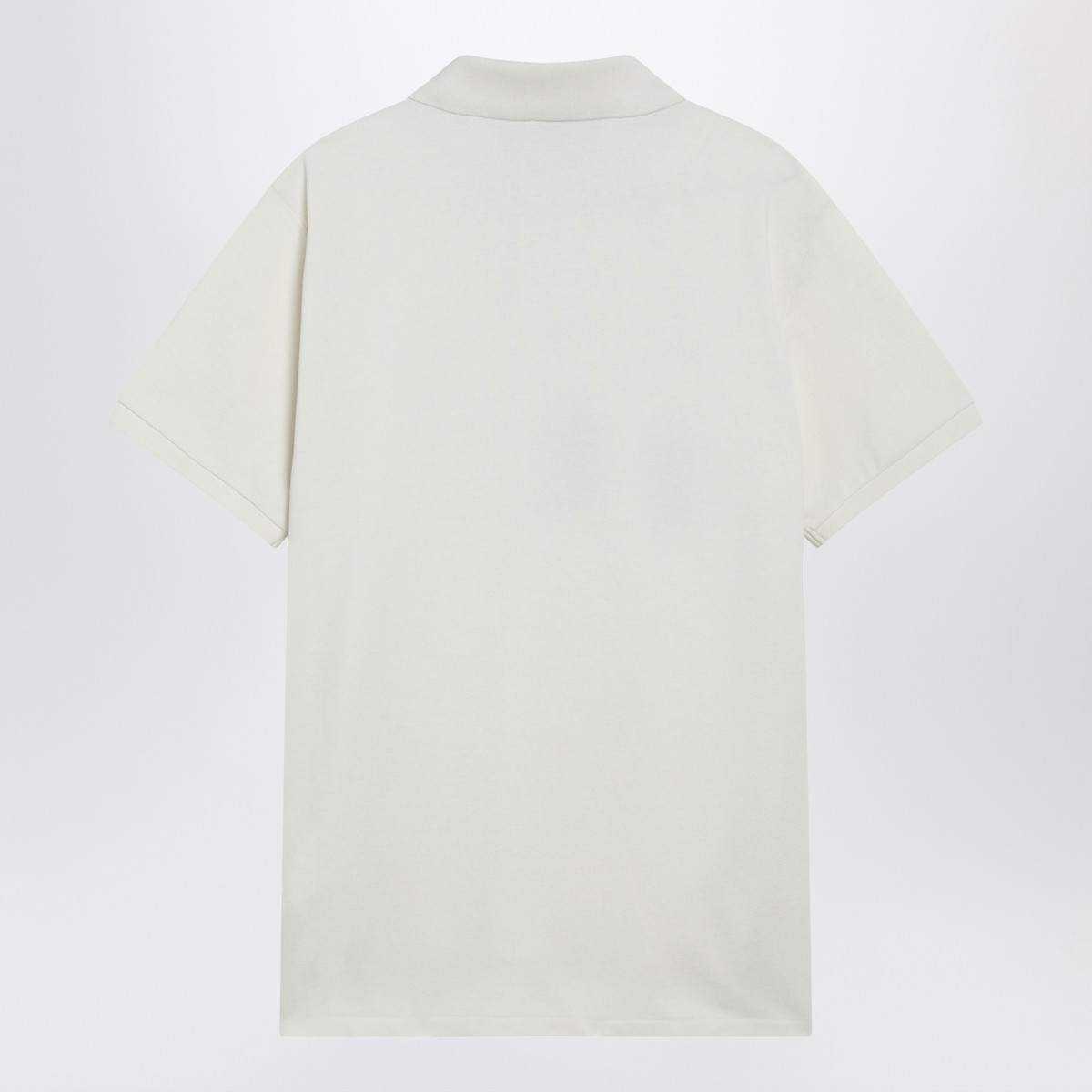 Polo Ralph Lauren cream-colored cotton polo shirt, featuring embroidered logo on the chest, front button placket, side slits, and short sleeves.