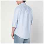 Ralph Lauren blue striped Oxford cotton polo shirt, featuring a button-down collar, front button placket, long sleeves with buttoned cuffs, logo embroidery on the chest, and a curved hem.