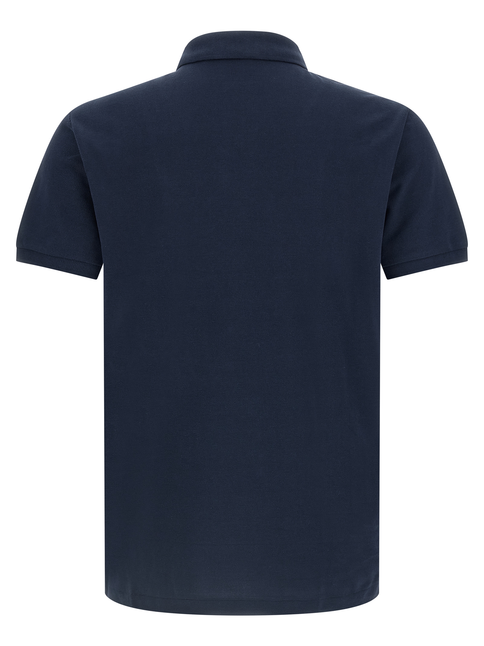 Polo shirt in piqué cotton with front logo embroidery, collar and buttons, short sleeves, side splits.