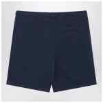 Navy blue cotton Bermuda shorts by Polo Ralph Lauren, featuring an elasticized waistband with drawstring, two side welt pockets, one applied pocket on the back, and contrasting embroidered logo.