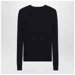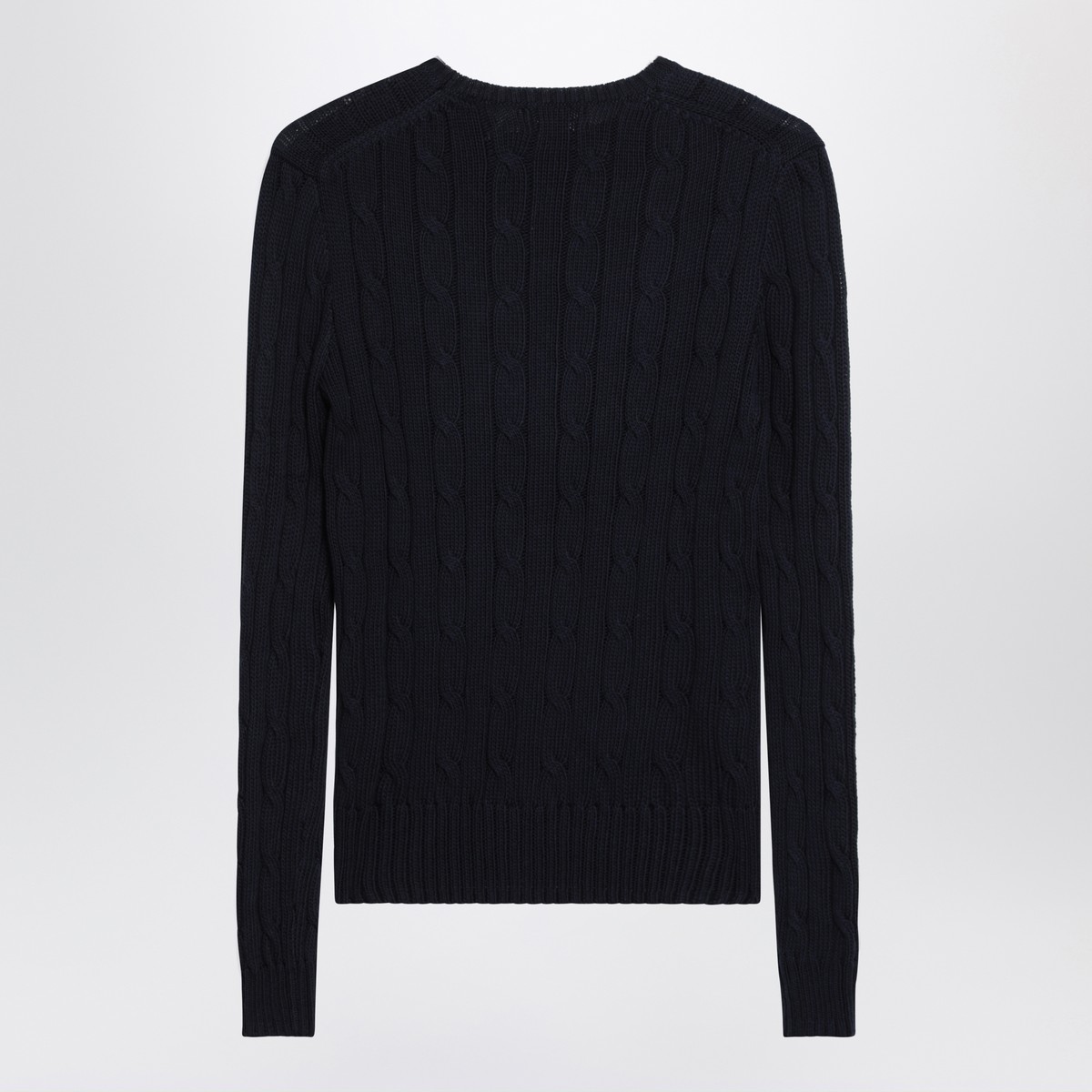 Crew-neck sweater by Polo Ralph Lauren in navy cotton, featuring long sleeves, cable knit design, contrasting embroidered chest logo, and ribbed trims.