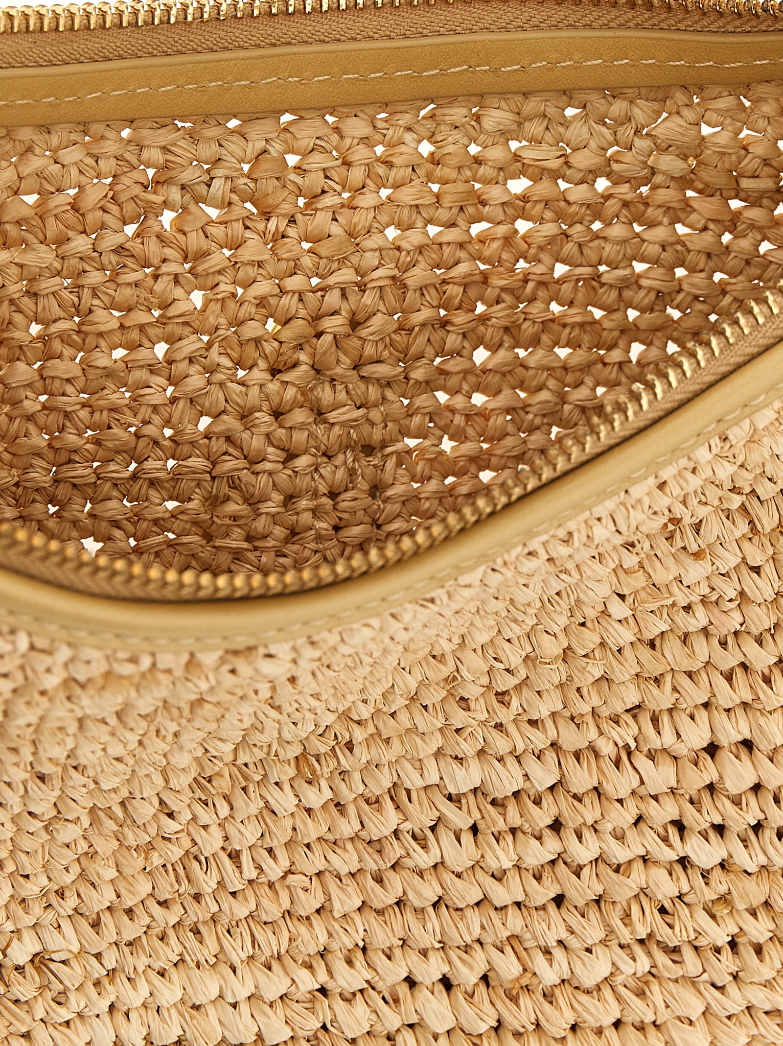 Polo ID’ raffia shoulder bag with saddle silhouette, zip closure, leather Hutton buckle detail with perforated logo, fixed leather handle, leather details