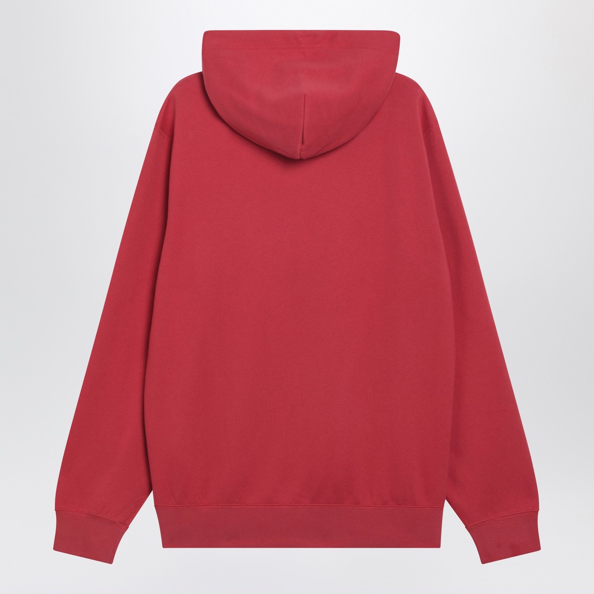 Polo Ralph Lauren red brushed cotton-blend hoodie featuring long sleeves with logo embroidery on one sleeve, drawstring hood, contrasting embroidered chest lettering logo, front kangaroo pocket and ribbed edges.