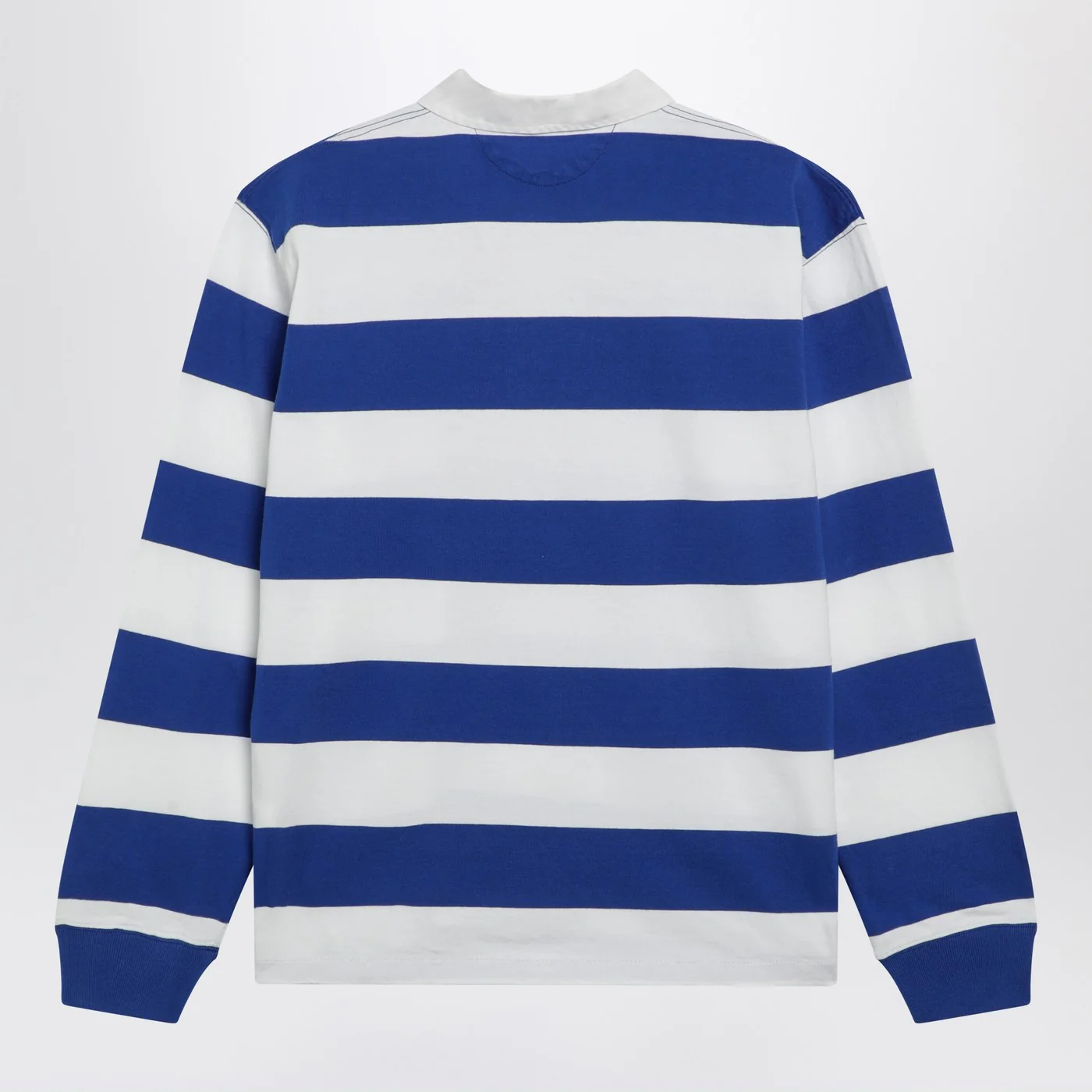 Polo shirt by Polo Ralph Lauren in white and light blue striped cotton featuring long sleeves ribbed cuffs embroidered logo on the chest and concealed front buttons.