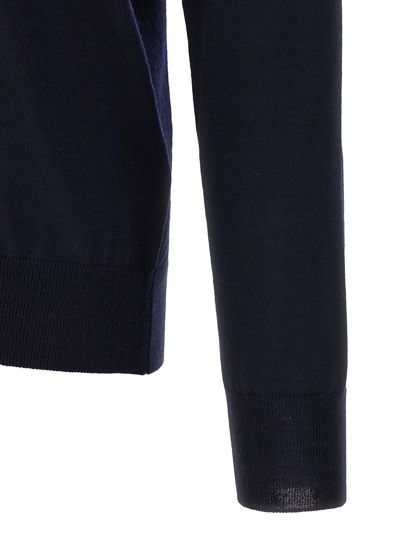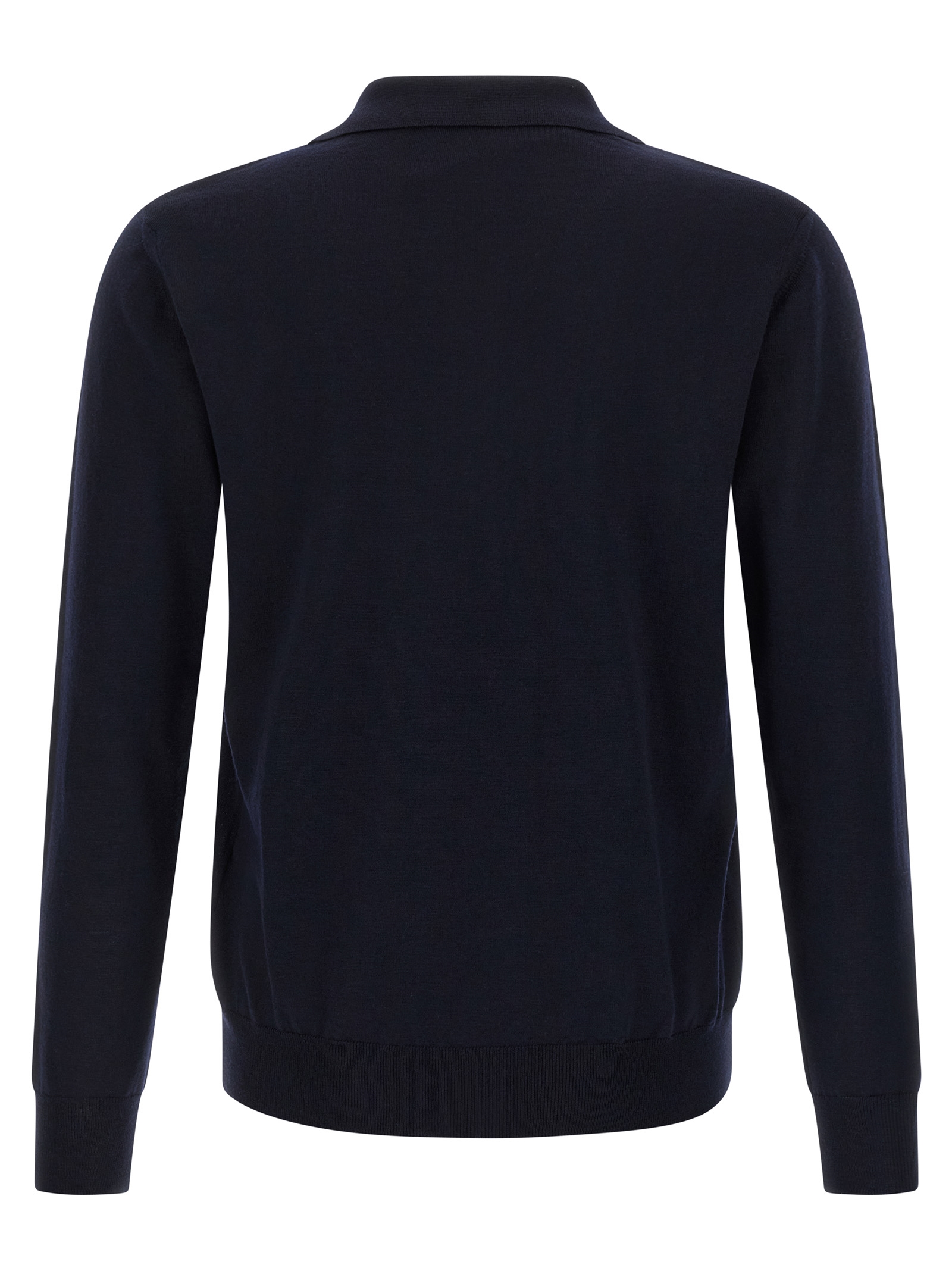 Light virgin wool polo shirt, Fabric patch with vlogo signature metallic on the front, Collar and buttons, Long cuffed sleeves, And headband on the hem.