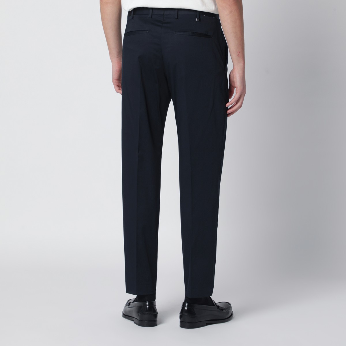 PT Torino blue cotton-blend trousers, featuring two side welt pockets, two back welt pockets, front closure, and belt loops with logo detail at the back.