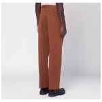 Brown cotton and linen trousers by PT Torino, characterized by belt loops with logo detail on the back, zip and button closure, central pressed crease, two side welt pockets and two flap pockets on the back.
