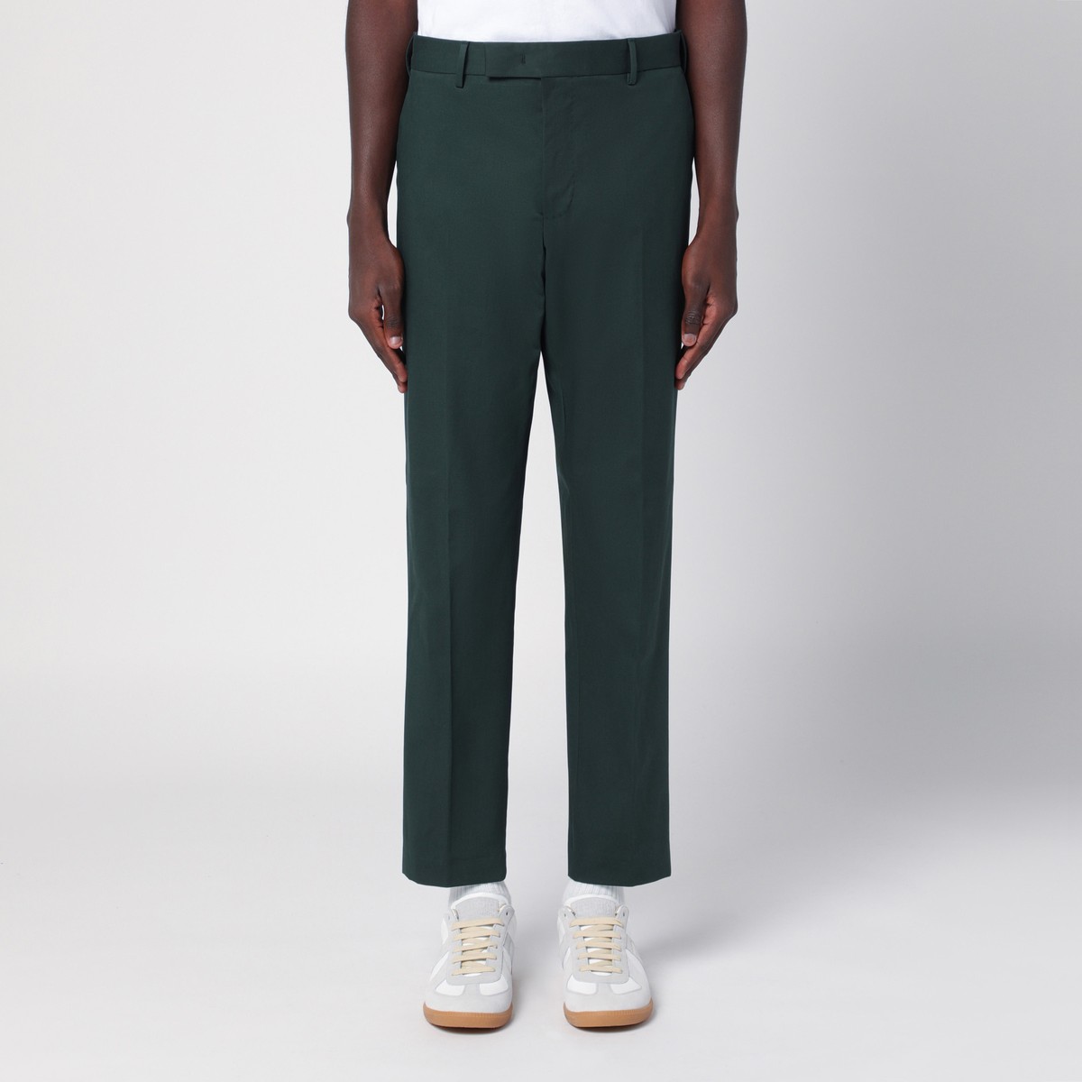 Trousers in dark green cotton by PT Torino, featuring two welt pockets on the side, two welt pockets on the back, front fastening and belt loops at the waist.