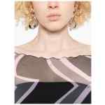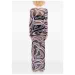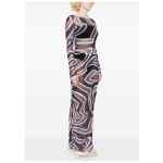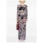 black and pink abstract print long sleeves boat neck scalloped hem Printed maxi dress