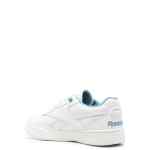 BB 4000 II logo-debossed sneakers from REEBOK featuring optical white, aqua blue, calf leather, panelled design, debossed logo to the side, embroidered logo to the rear, round toe, front lace-up fastening, branded insole and flat rubber sole. BB4000 leather sneakers