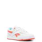 Club C Revenge low-top sneakers from REEBOK featuring white, lava orange, calf leather, panelled design, logo-debossed tongue, debossed logo to the side, round toe, perforated toebox, front lace-up fastening, contrasting branded heel counter, branded insole and flat rubber sole. BB4000 leather sneakers