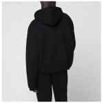 Represent black cotton sweatshirt, featuring a hood, zip closure, side pockets, logo tag, long sleeves with dropped shoulders, and an oversized fit.