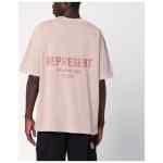 Dusty mauve cotton crewneck T-shirt by Represent, featuring a lettering logo print on the back, short sleeves, lettering logo on the chest and straight hem with metallic logo detail.