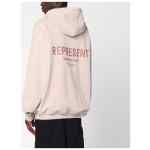 Oversized hooded sweatshirt by Represent in dusty mauve cotton, featuring a logo lettering print on the back, a front kangaroo pocket with logo tag, ribbed edges, and front logo lettering.