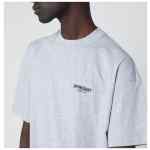 Crew-neck T-shirt by Represent in grey cotton, featuring logo lettering print on the back, short sleeves, logo lettering on the chest, and straight hem with metal logo detail.