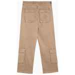 Beige denim cargo trousers from Represent, featuring a front zip and button fastening, belt loops, three front pockets, numerous cargo flap pockets on the sides and back.