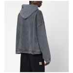 Represent sweatshirt in vintage effect gray cotton, featuring a hood, front kangaroo pocket with logo tag, long sleeves with dropped shoulders, and an oversized fit.