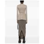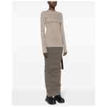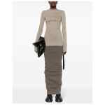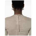taupe grey cotton blend denim raw-cut edge seam detailing round neck long sleeves flared design rear zip fastening Long sleeve denim t-shirt