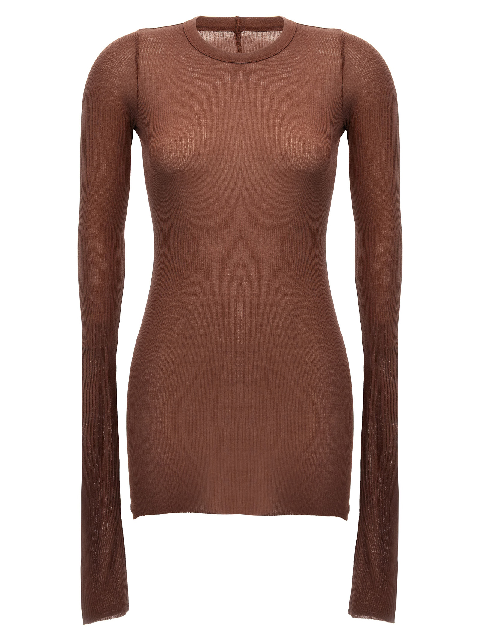 ‘Rib Ls T’ ribbed viscose and silk t-shirt, crew neck, long sleeves, raw cut hem.