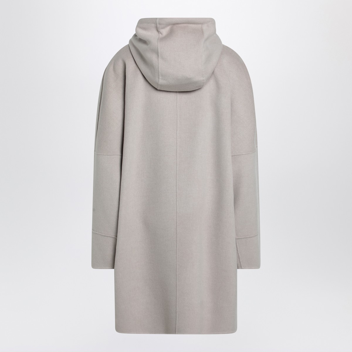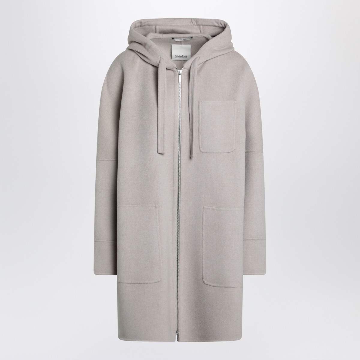 Coat by ’S Max Mara in beige virgin wool double drap, featuring an oversized line with rounded side slits, low armhole kimono sleeves, front double-zip closure, one applied chest pocket, two applied front pockets, a hood with drawstring and an unlined design.