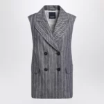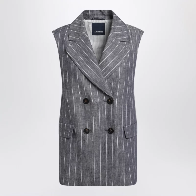S Max Mara Double-Breasted Pinstripe Linen Vest