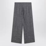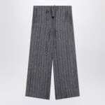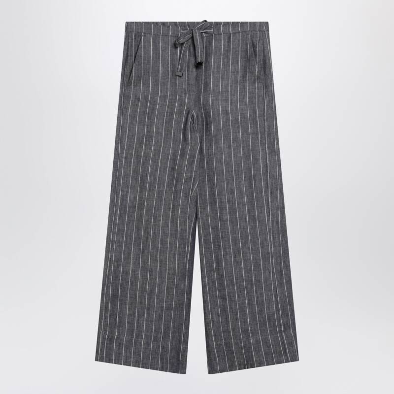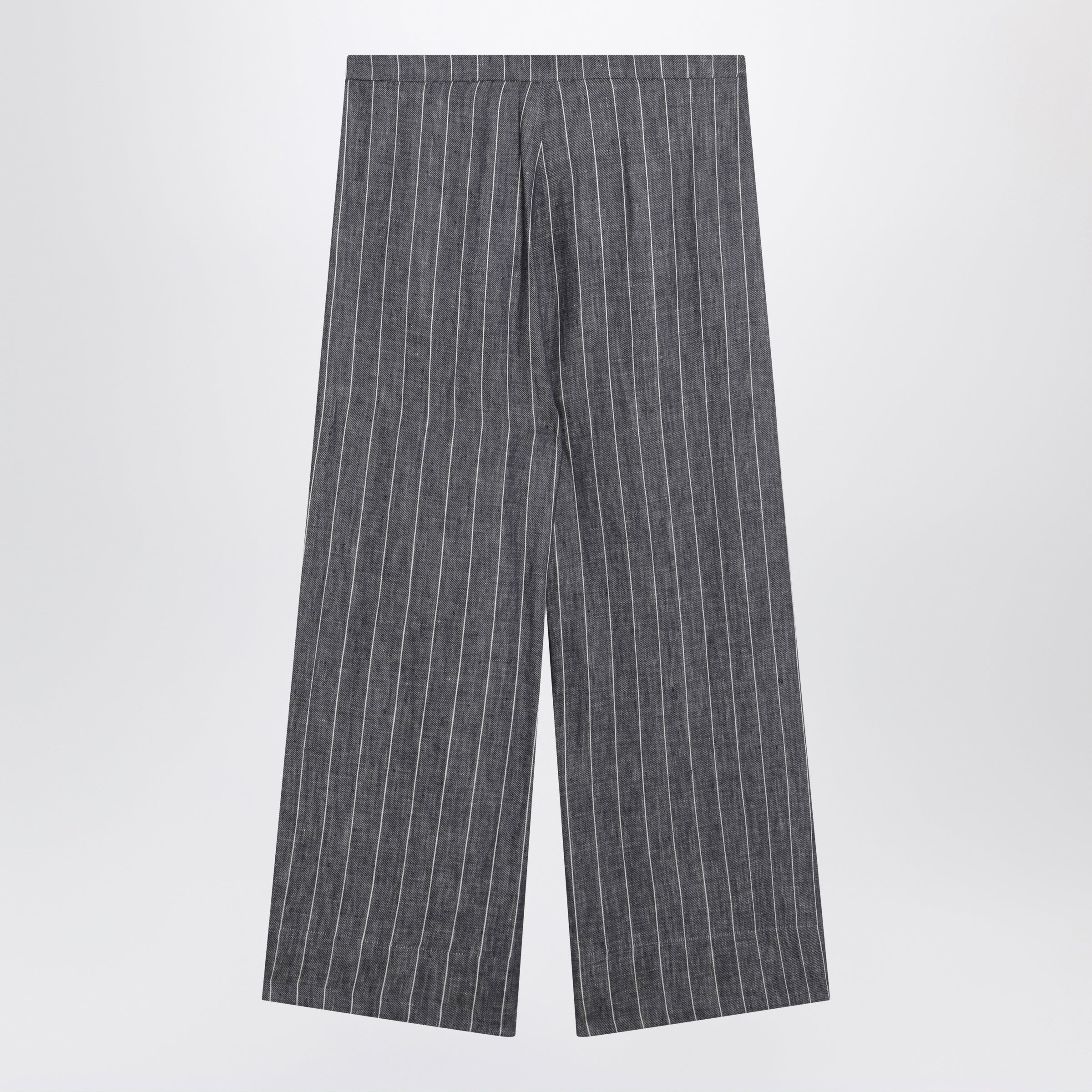S Max Mara Navy blue denim-effect pinstripe linen trousers