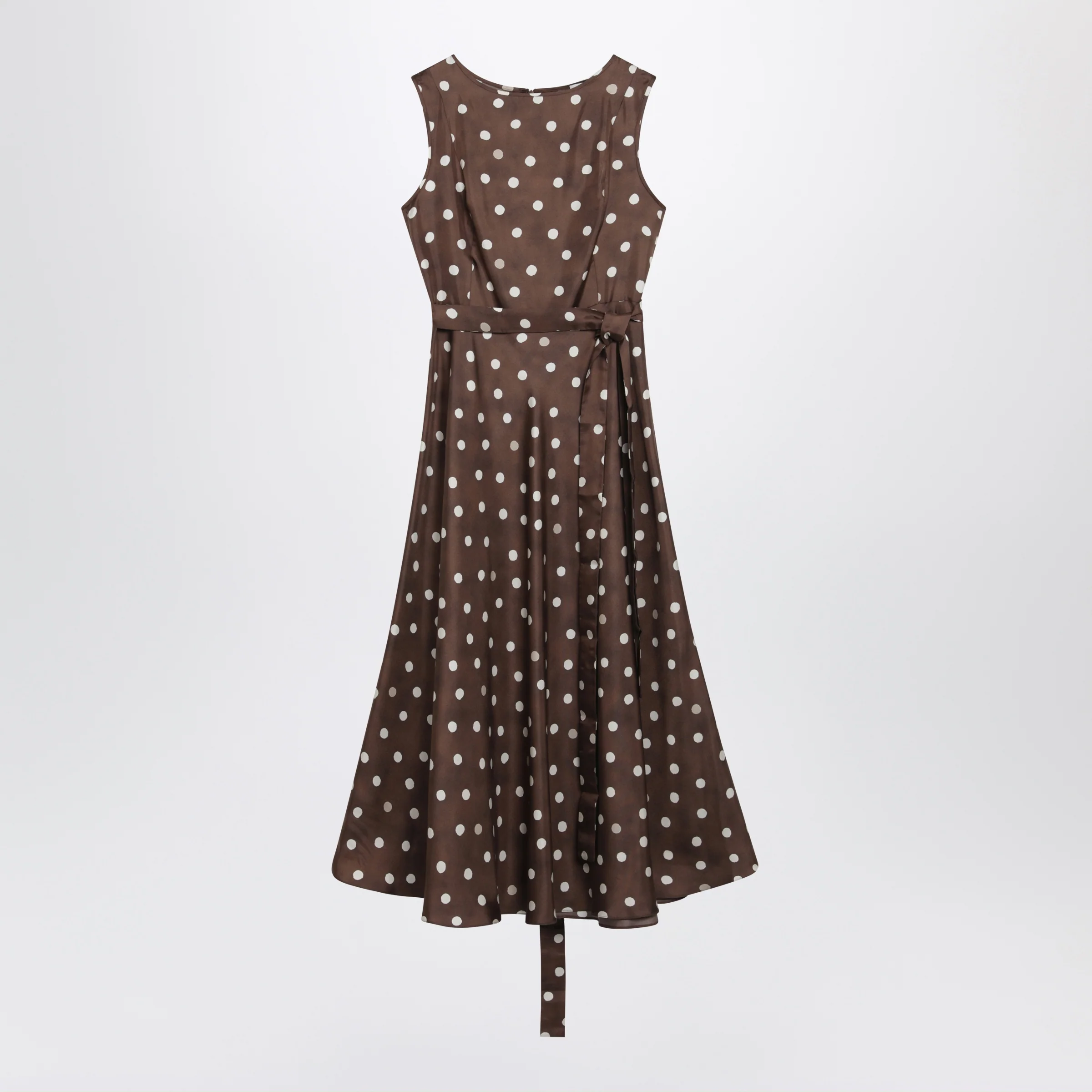S Max Mara Printed silk twill sleeveless midi dress in brown