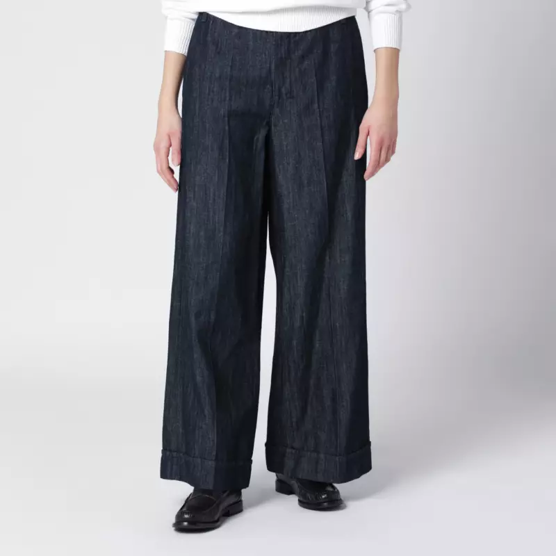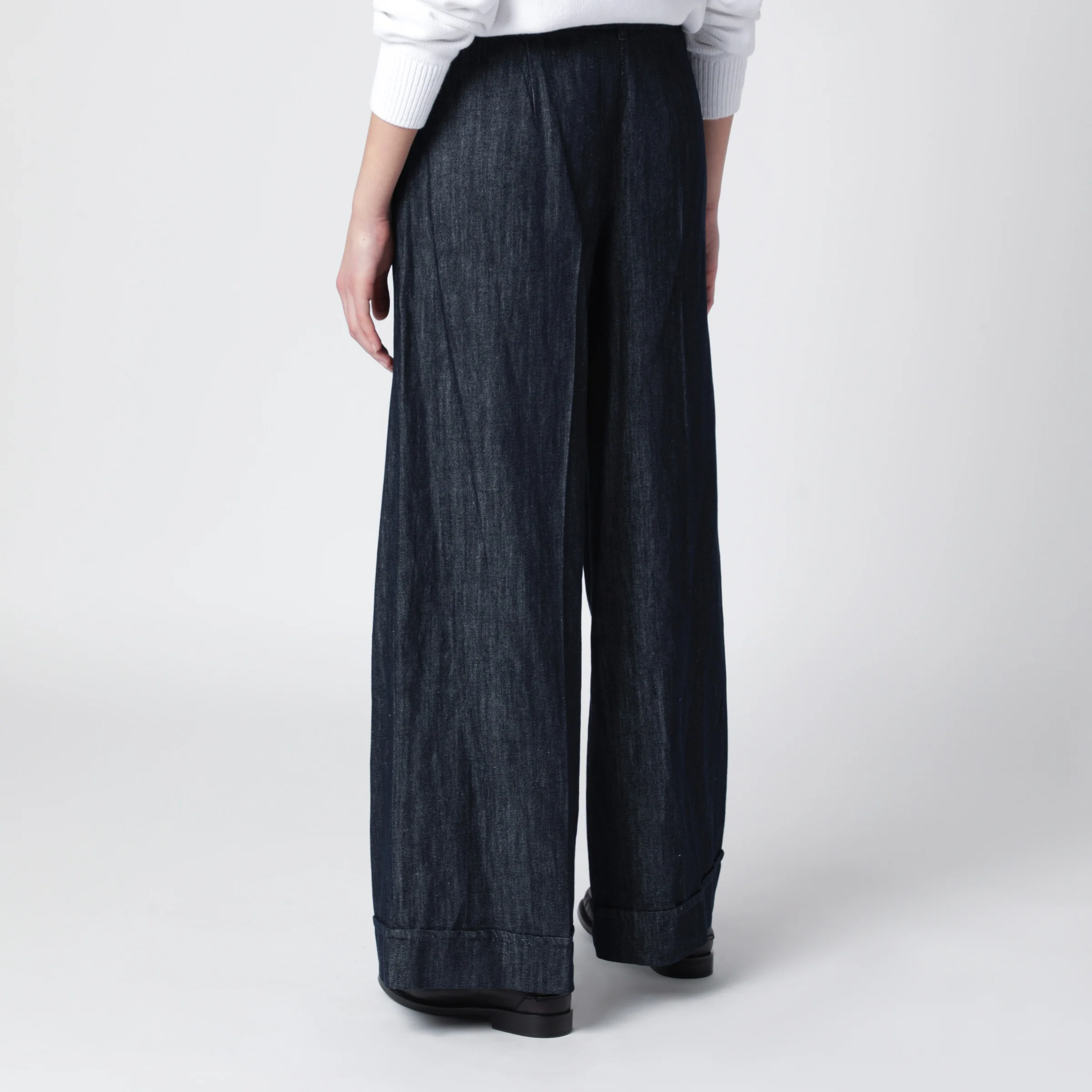 S Max Mara Straight navy blue cotton and linen denim trousers
