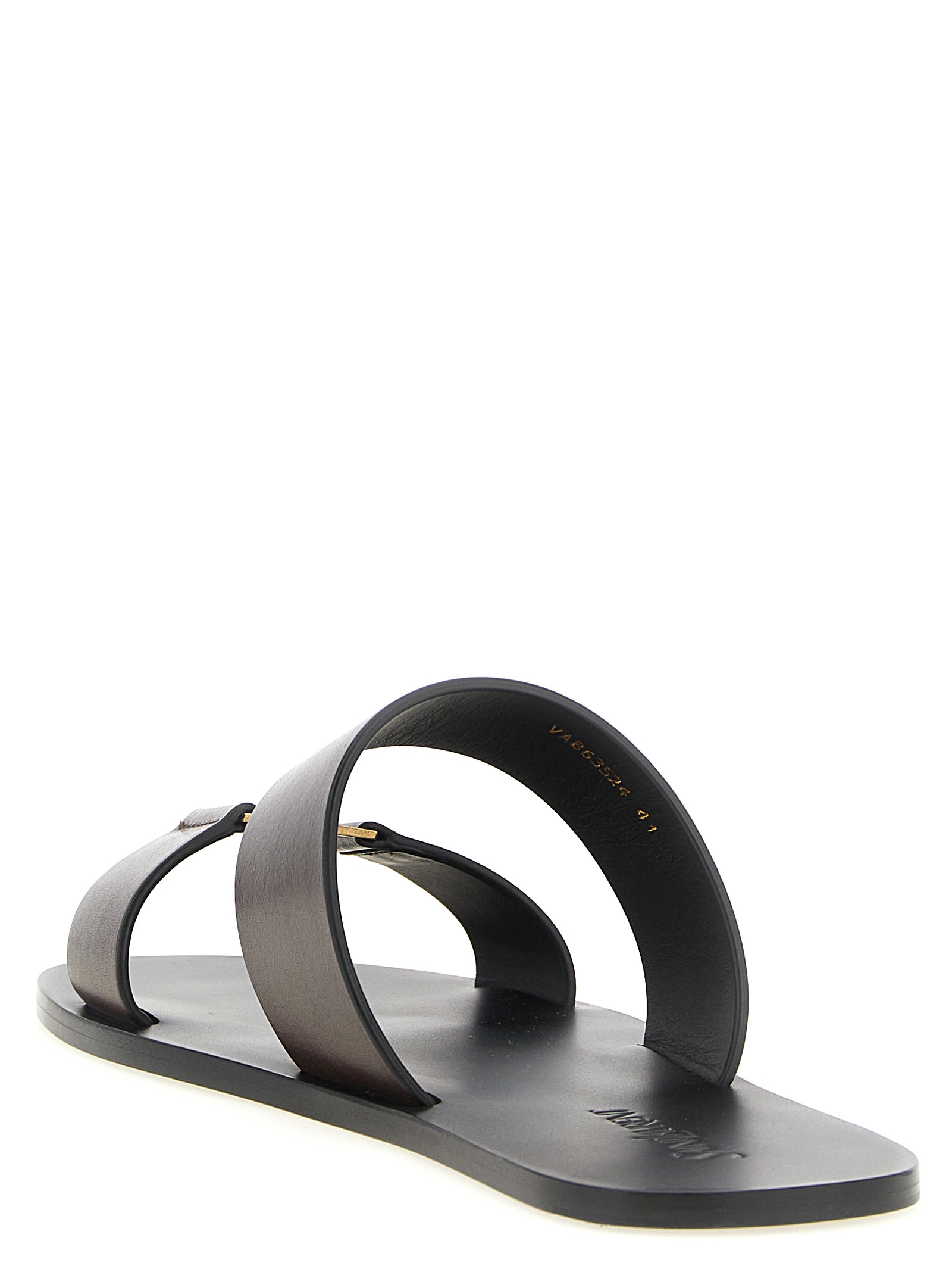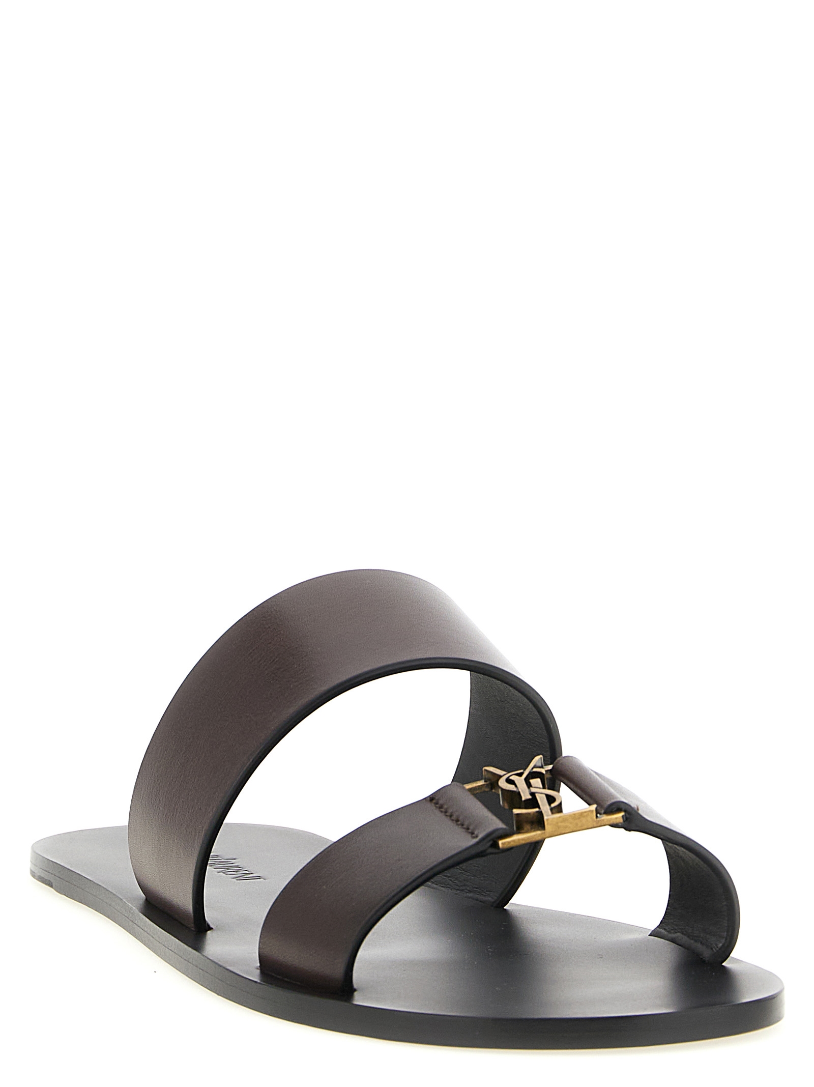 ‘babylone’ leather flat sandals, Two thick bands with antiqued effect metal ‘cassandre’ logo on the front, Leather sole. Size and Fit – EU MEN