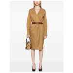 camel brown cotton twill weave V-neck long sleeves buttoned cuffs detachable waist belt two side inset pockets unlined straight hem We’ve partnered with Good On You — an independent agency that rates how brands perform in relation to their impact on the planet, people and animals, with a multi-criteria rating simplified to a five points scale. In order to be awarded our conscious label, larger brands need to score a minimum of four out of five (‘Good’), while smaller brands must score at least three out of five (‘It’s A Start’). This item comes from a brand rated three out of five (‘It’s A Start’) by Good on You at the time it was added on FARFETCH. Please note, this is a brand-level rating and does not guarantee that this product is made with conscious materials. Learn more about what makes a product Conscious on our Conscious Criteria page Cotton twill midi dress