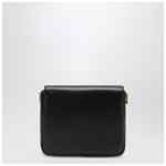 Saint Laurent shoulder bag in black leather, featuring removable chain strap, front flap with Cassandre logo, one internal flat pocket, magnetic button closure, and bronze-tone metal hardware.