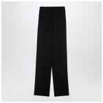 Black wool Saint Laurent trousers featuring wide leg, high waist, front darts, front zip and button fastening, belt loops, two side welt pockets and two back welt pockets with button.