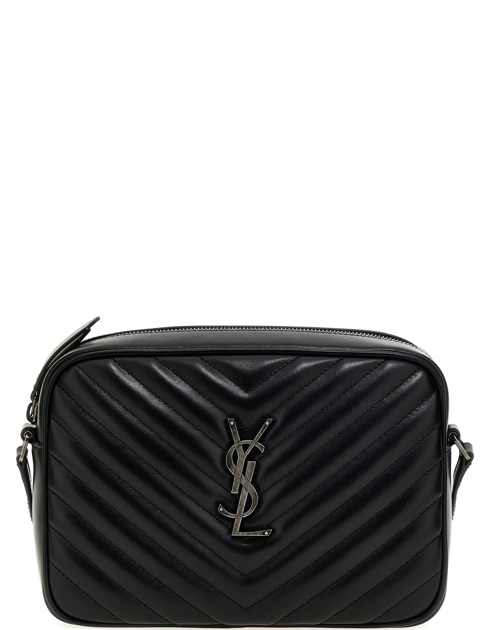 ‘Camera Bag Lou’ quilted leather crossbody bag, front metal logo, zip closure, adjustable shoulder strap.