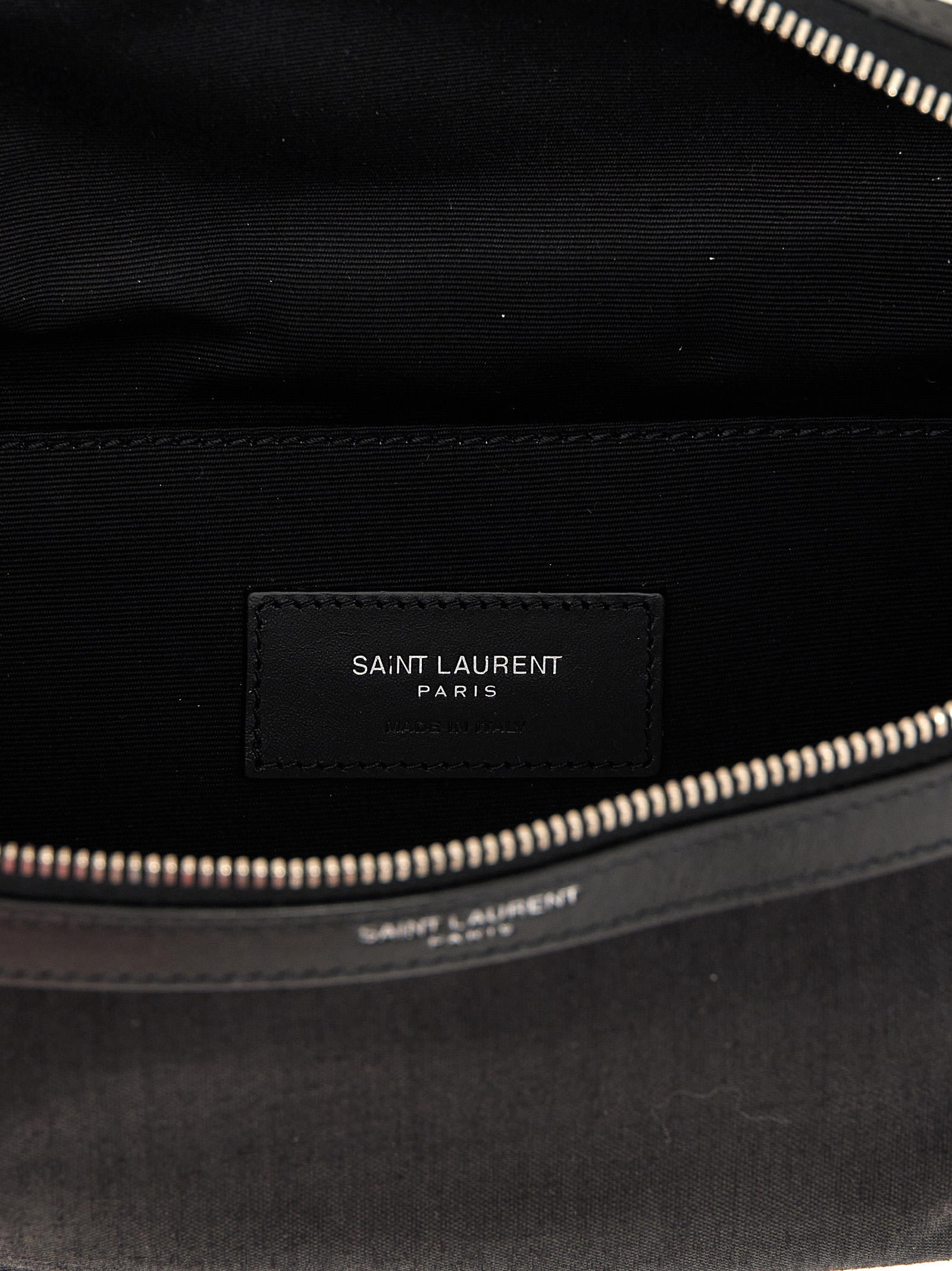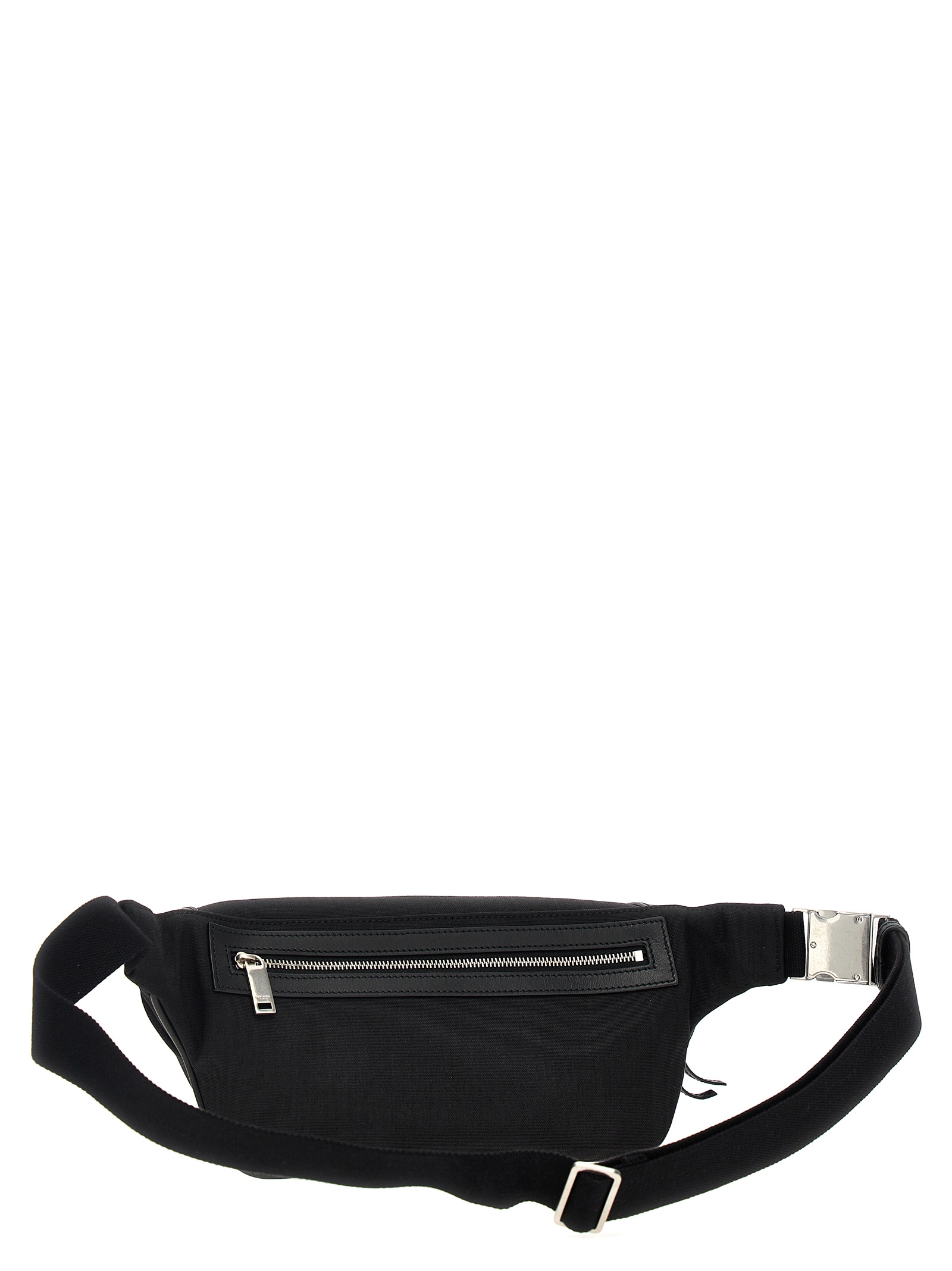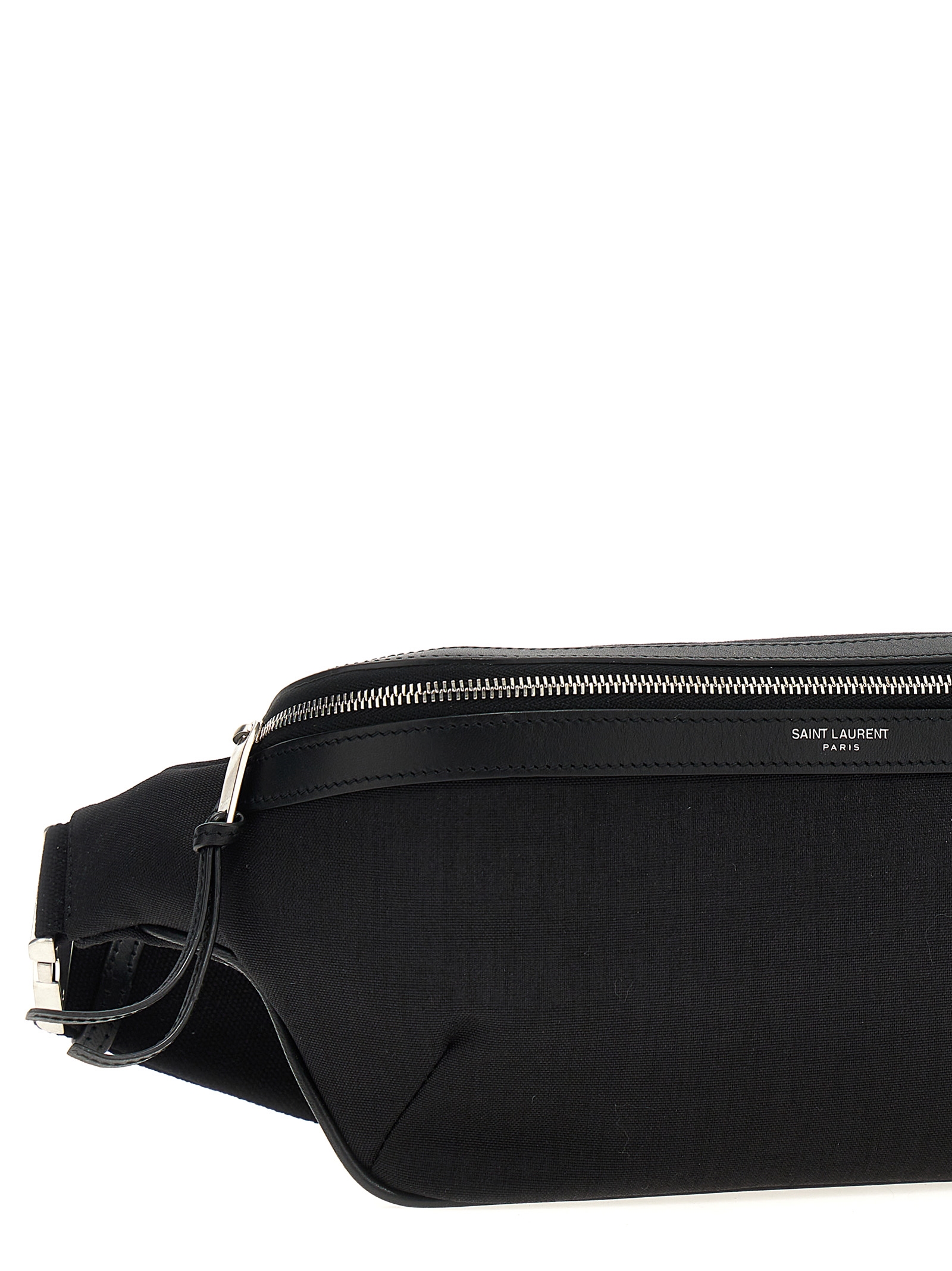 ‘Classic’ canvas fanny pack with leather details, front logo print, zip closure, adjustable shoulder strap.