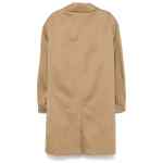 medium beige cotton gabardine weave concealed front button fastening classic collar long sleeves two side slit pockets central rear vent removable faux-fur lining straight hem Cotton coat