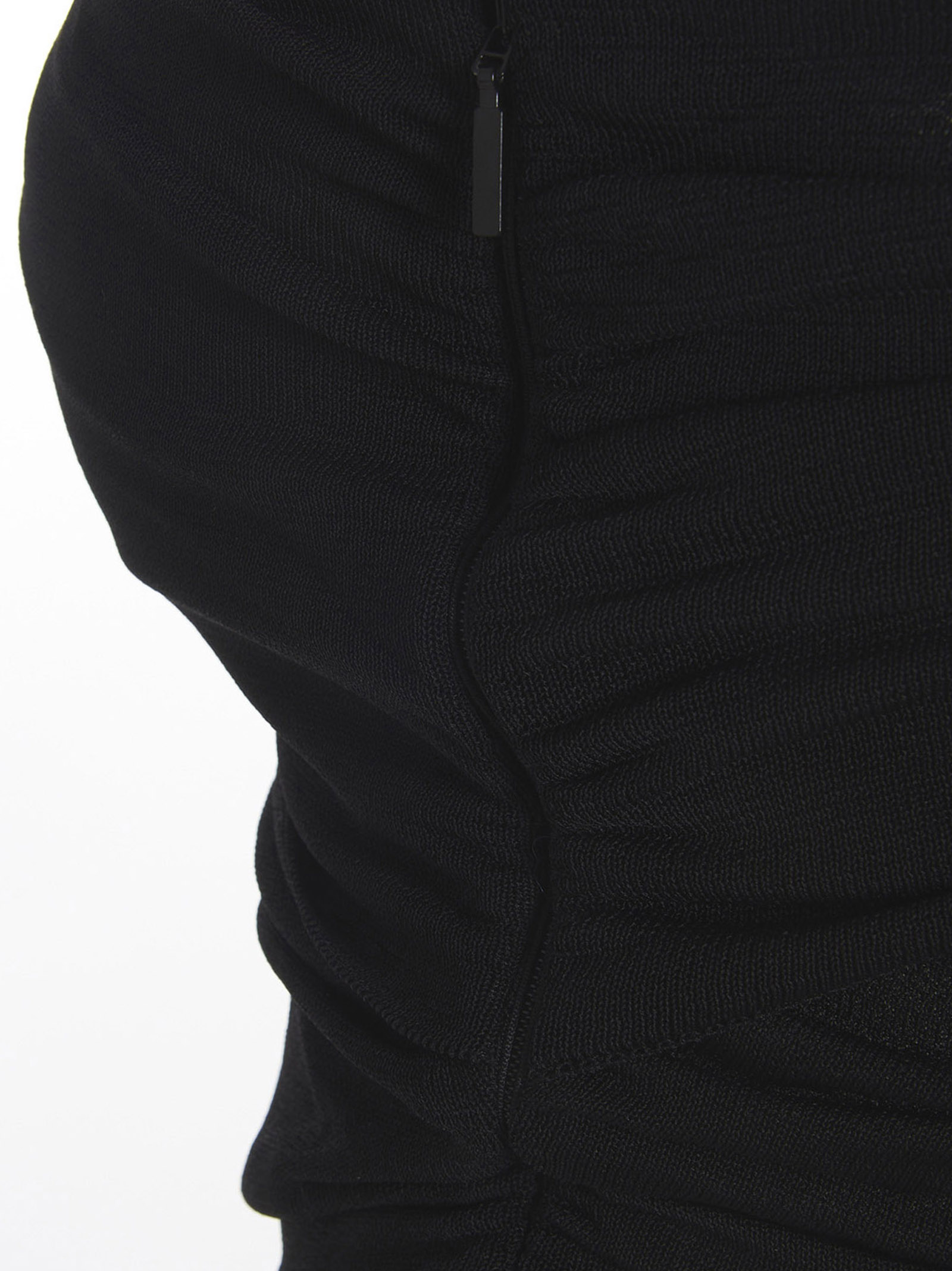 Sleeveless dress with viscose blend draping on one side and long sleeves on the other.