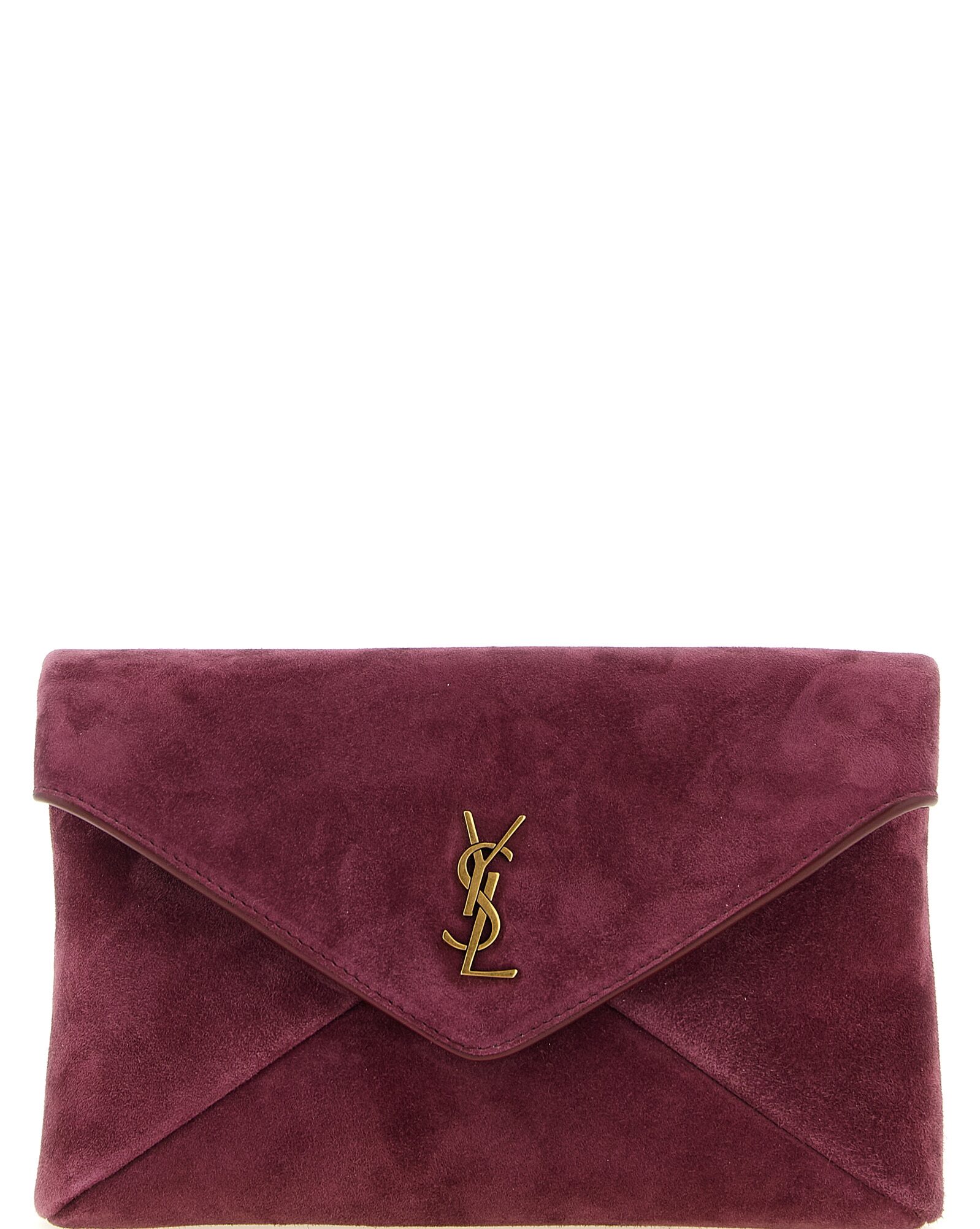 ‘envelope’ mini suede crossbody bag, Flap closure with snap button and brass ‘cassandre’ logo on the front, Envelope structure, Leather lining, Chain shoulder strap with leather protection.