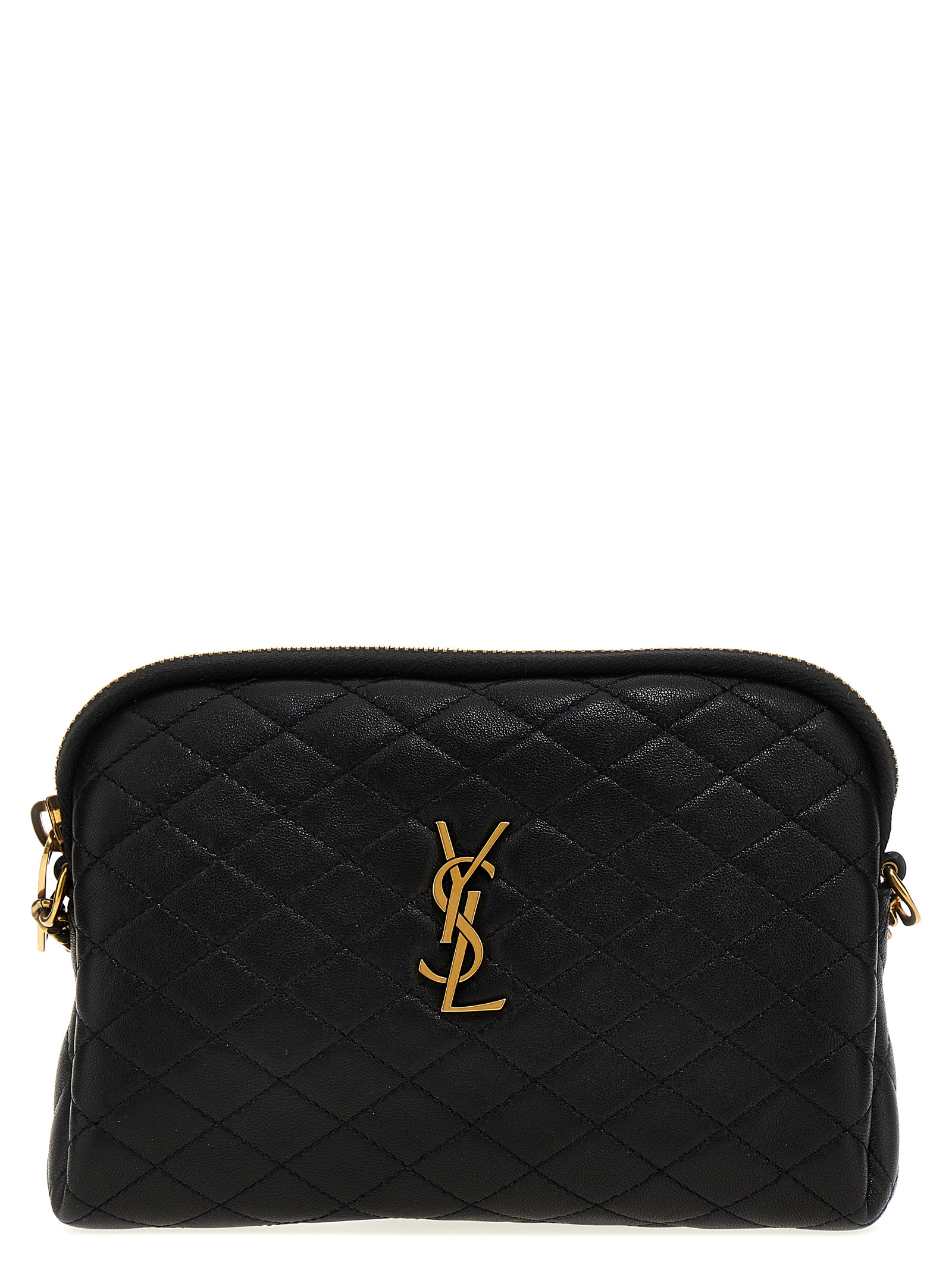 Quilted leather ‘gaby’ shoulder strap, Front logo appliqué, Zip closure, Adjustable shoulder strap.