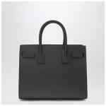 Saint Laurent baby-size handbag in smooth grey leather, featuring double handle, adjustable and removable shoulder strap, interior with two compartments separated by a zip divider, embossed front logo, metal feet, gold-tone metal hardware and padlock detail with leather case.