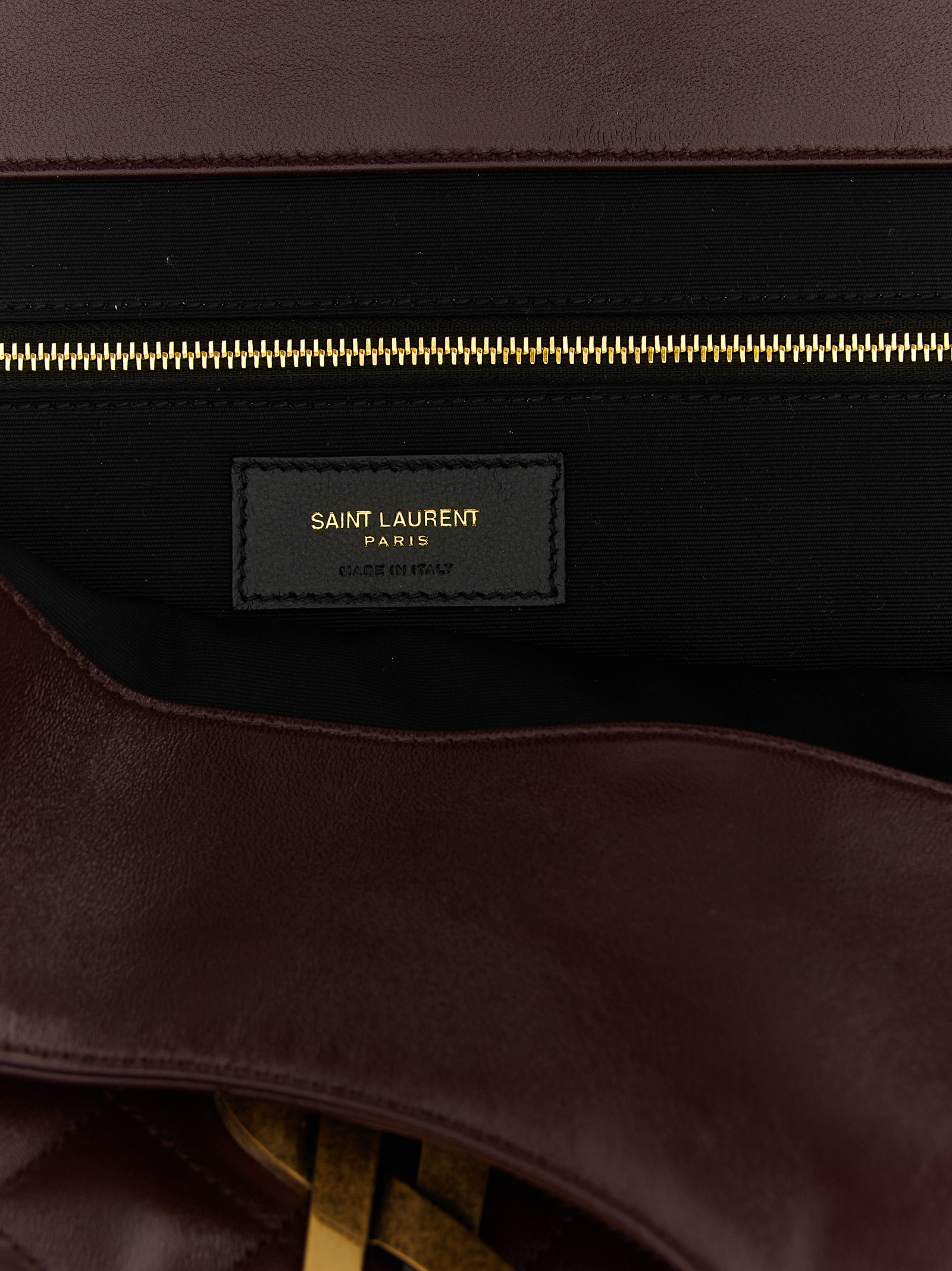 ‘icare’ maxi lamb nappa shopping bag with quilted check stitching, Maxi metal ‘cassandre’ logo with antiqued effect on the front, Double fixed handle, Leather lining, Removable clutch.