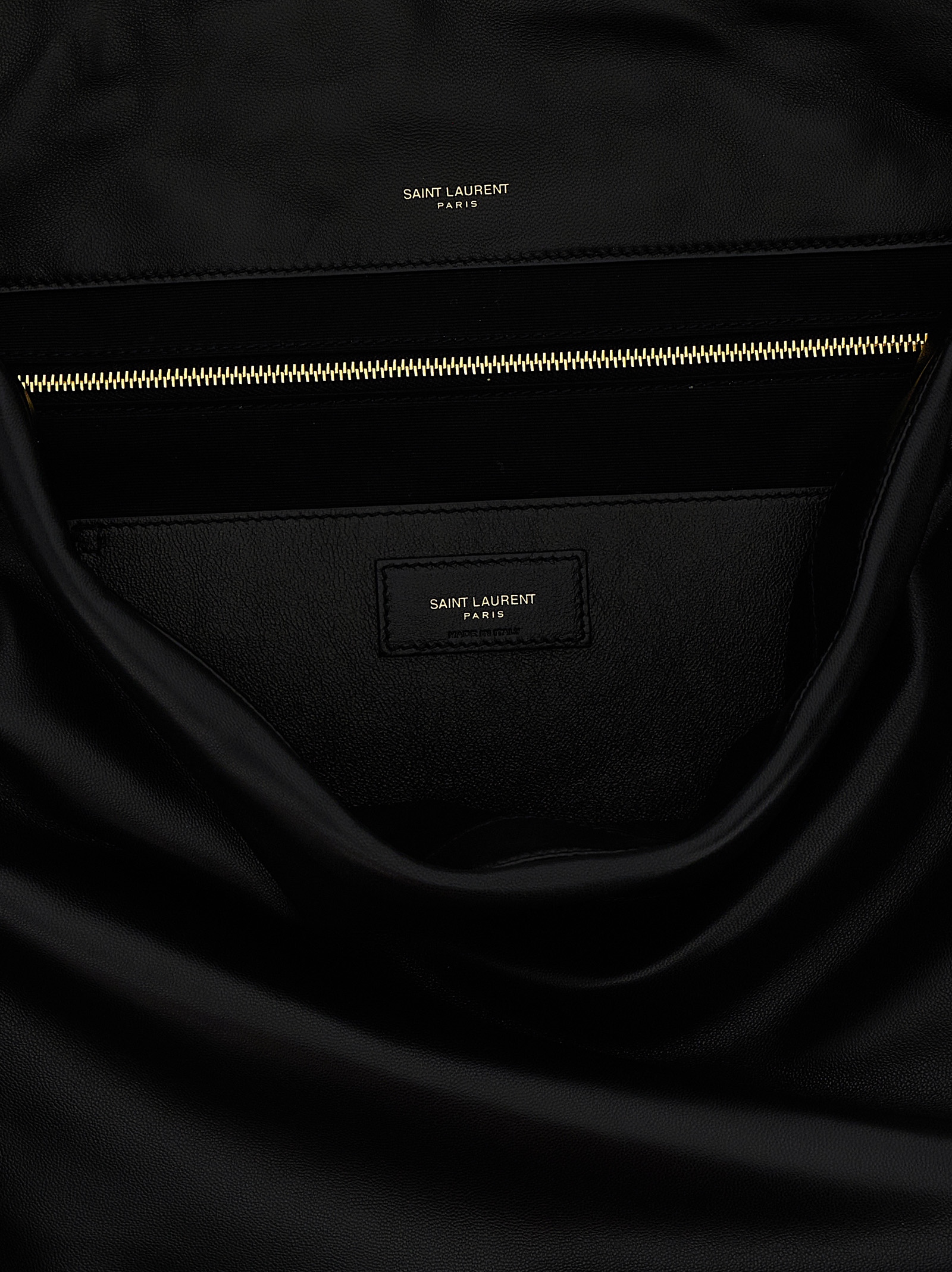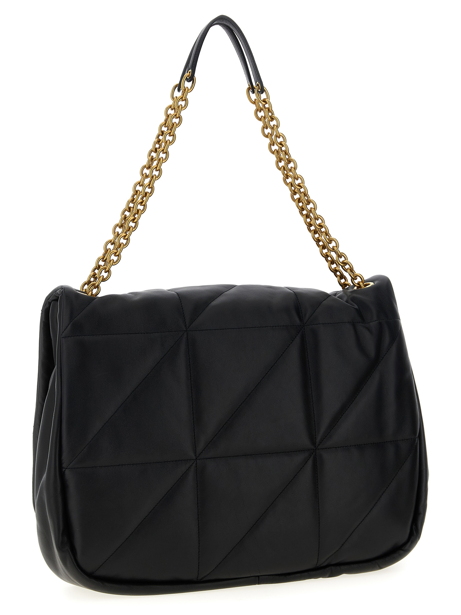 ‘Jamie’ maxi nappa shoulder bag, quilted with ‘Carré Rive Gauche’ pattern, sliding chain shoulder strap, automatic button closure, inner pocket, metal details and bronze logo.