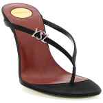 ‘jerry’ mules in satin crêpe with flip-flops with rhinestone ‘ysl’ logo, Metal heel, Leather sole. Size and Fit – EU WOMAN – Heels: 8 cm