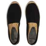 These black Saint Laurent logo canvas espadrilles are made in Italy and feature an almond toe, a slip-on silhouette, embroidered branding and leather heel counters with gold foil detailing. They’re set on woven jute midsoles and have rubber outsoles. Rita Heyworth and Lauren Bacall were the first actresses on film to wear espadrilles in the 1940s. You’ll be following in their iconic footsteps by wearing this pair from Saint Laurent. Signature canvas espadrilles