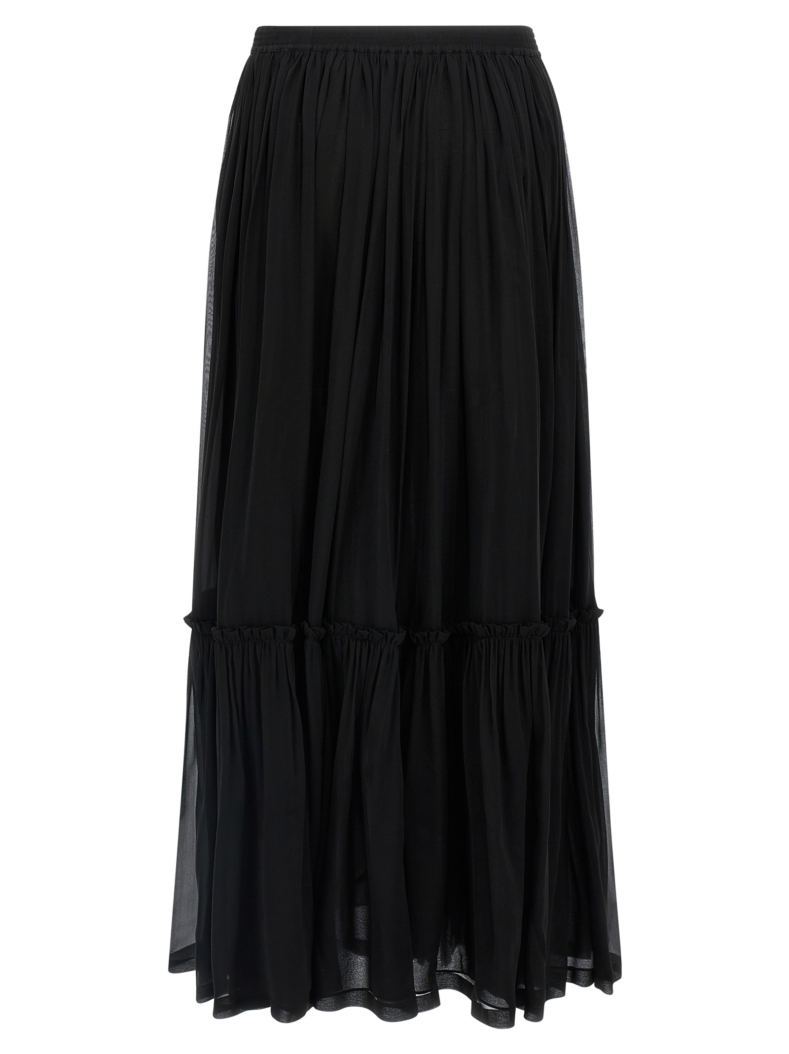 Long pleated skirt in silk with elastic waistband.