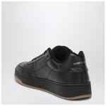 Black smooth leather sneakers by Saint Laurent featuring leather upper, round toe, lace-up fastening, logoed tongue, gold logo on side, black logoed padded heel and rubber sole.