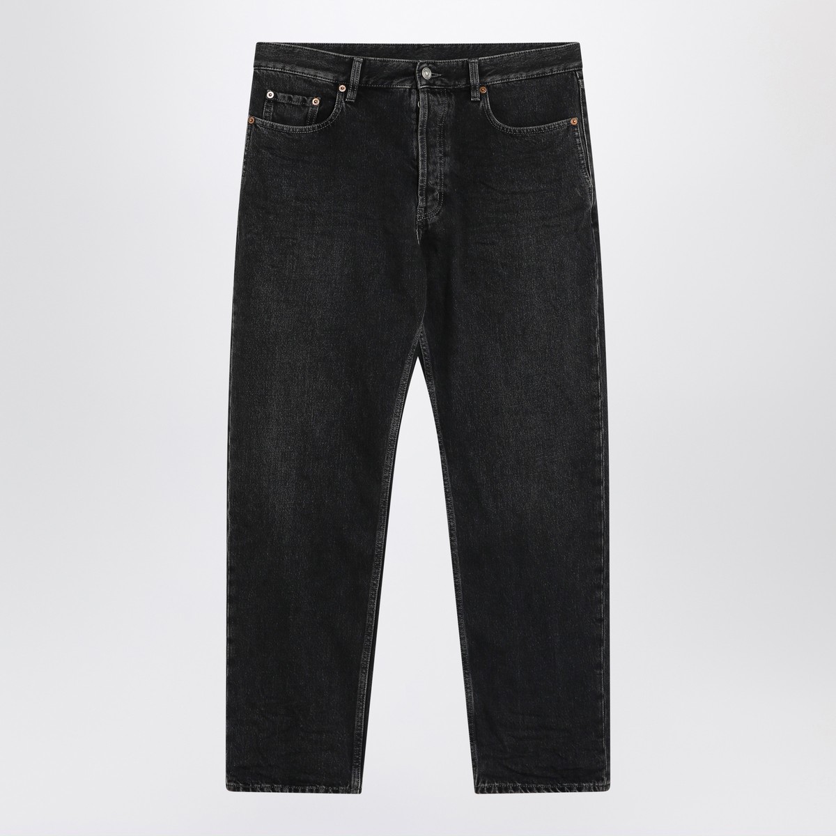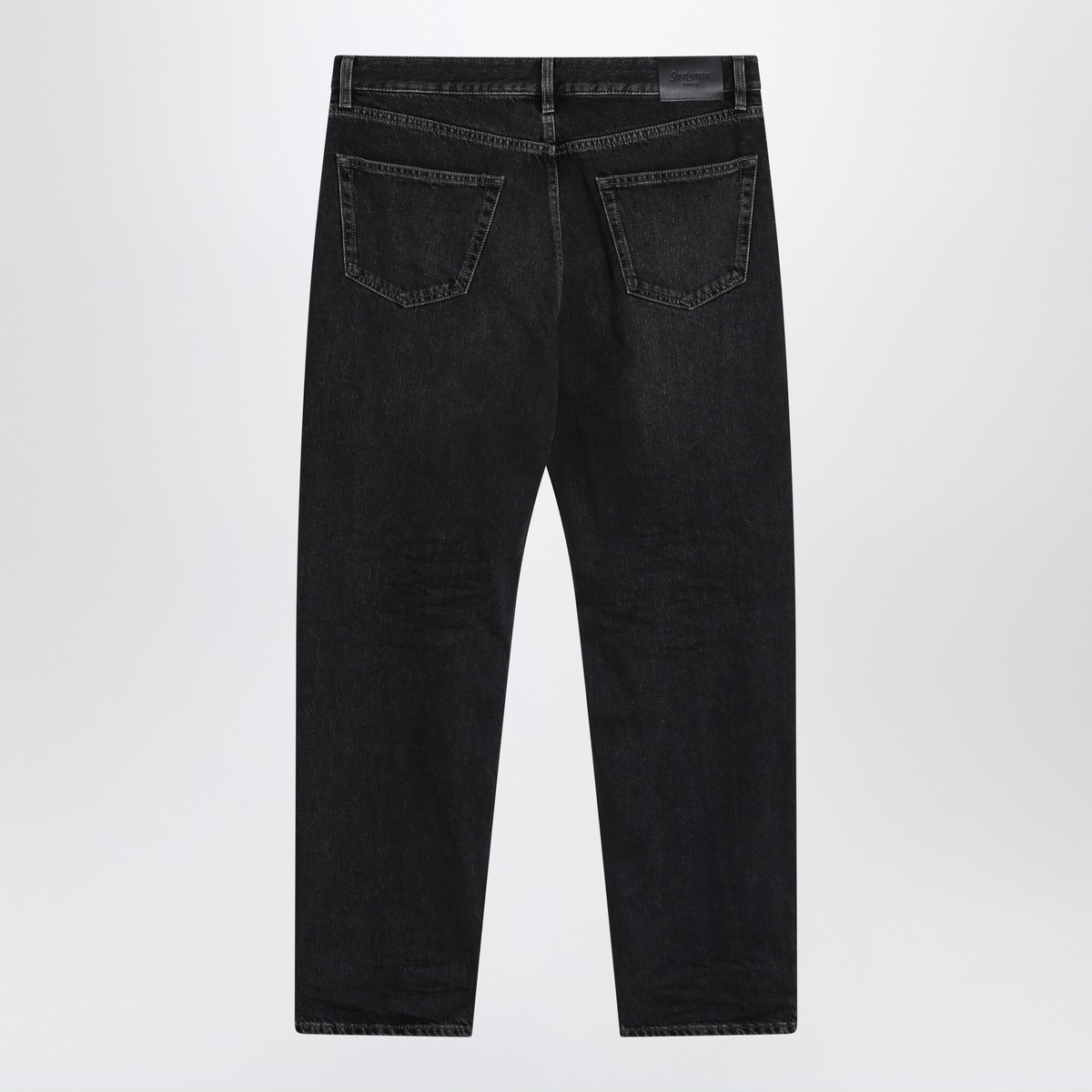Straight-leg jeans by Saint Laurent in black cotton denim, featuring belt loops, button closure and zip fly, five pockets and logo label on the back.
